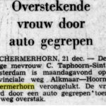 Clasina is overleden door een verkeersongeluk. Zij werd s\\\'\\\'avonds bij slecht weer , tijdens het oversteken vanaf de bushalte aangereden in Schermerhorn