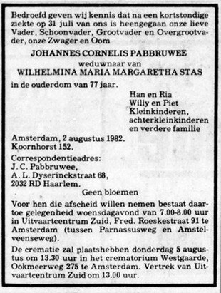 overlijden Cornelis Johannes Pabbruwee 1905 Gepubliceerd op 20 maart 2022 in Johannes Cornelis PabbruweeVolledige resolutie (310 × 411)