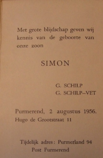 geboorte kaartje simon Schilp 2-8-1956 Purmerend Gepubliceerd op 9 april 2021 in Simon SchilpVolledige resolutie (333 × 508)